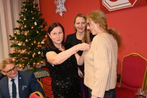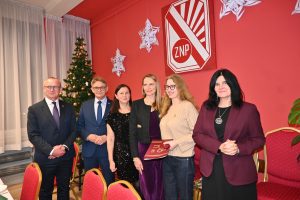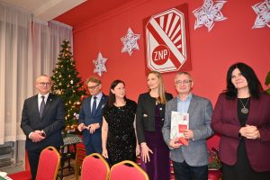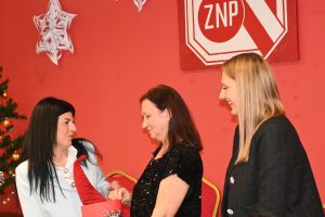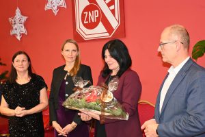 Złotą Odznakę ZNP – koleżance Małgorzacie Plucie,
