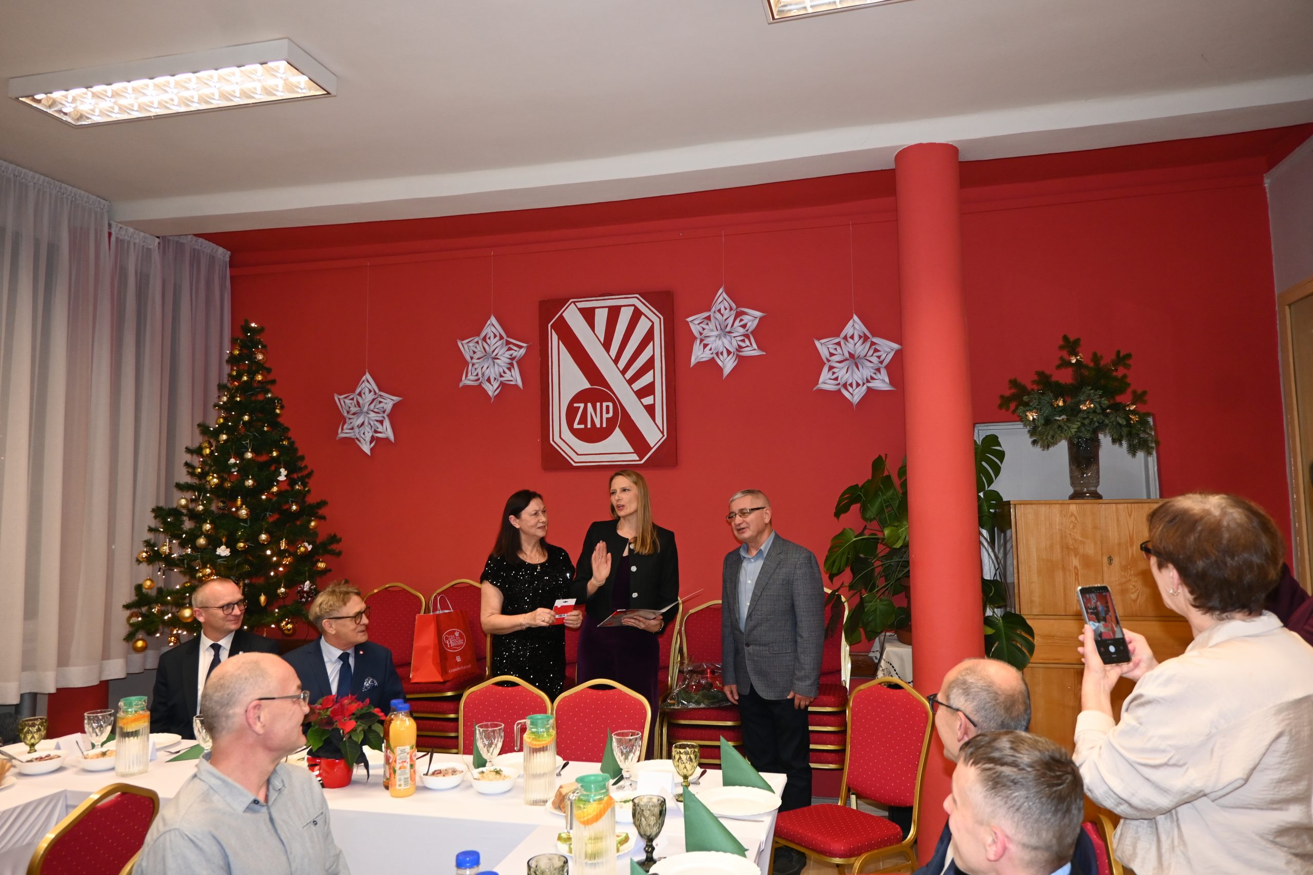 Złotą Odznakę ZNP – koleżance Małgorzacie Plucie,